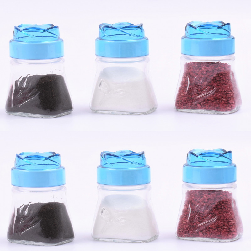 طقم توابل ملح وفلفل مكون من 6 قطع شفاف / أزرق