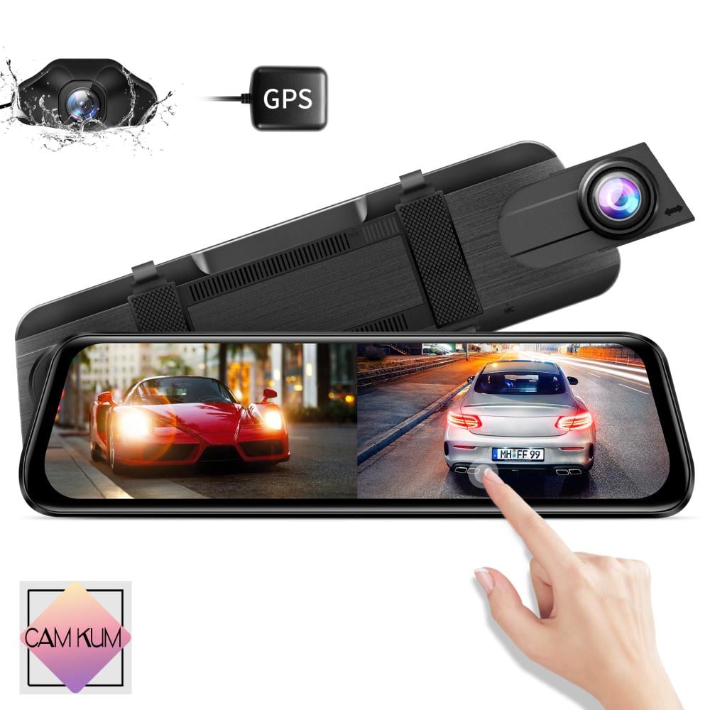 داش كام ازدوم Azdome AR09 مراية مرايا واي فاي كاميرتين جي بي اس شاشة لمس زاوية متسعة رؤية ليلية حساس الحوادث نظام جي