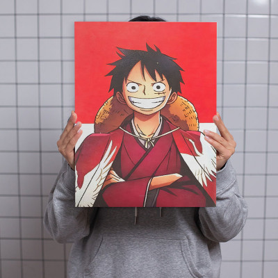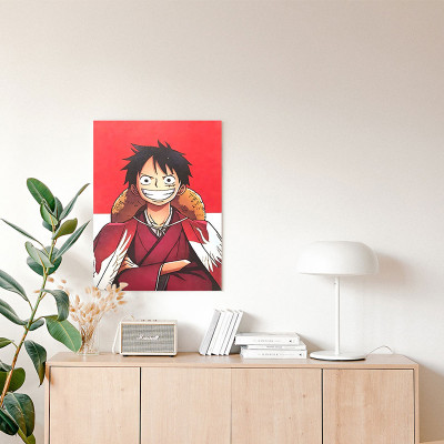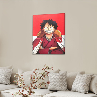لوحة كانفاس على إطار خشبي بتصميم لوفي أنمي وان بيس