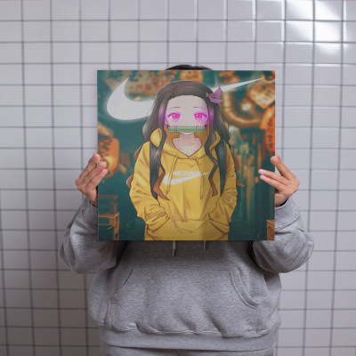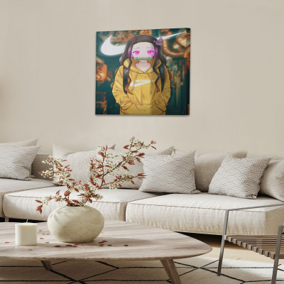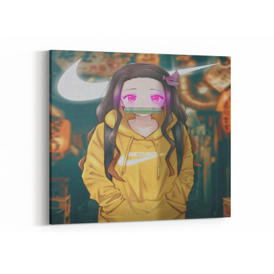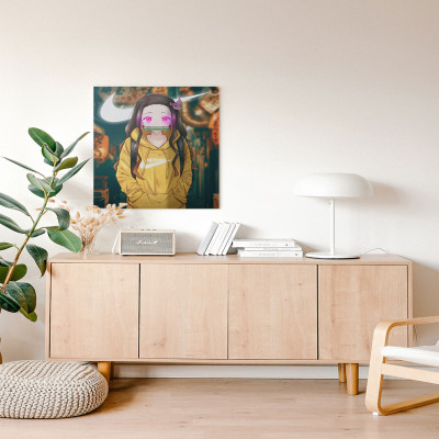 لوحة كانفاس على إطار خشبي بتصميم نيزوكو أنمي قاتل الشياطين