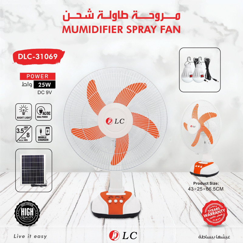 مروحة طاولة قابلة للشحن مع رذاذ من DLC - موديل DLC-31069