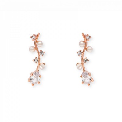 بشكل غصن متدلي بلون روز قولد ، يحتوي على عدد من اللؤلؤ الجذاب والكريستال اللامع ، تصميم حصري مصنوع من مواد آمنه على الأذن ، لا يتغير لونه مع مرور الوقت عند الحفاظ عليه وعدم تعرضه للعطور او الكريمات المعطره ، يحتوي على الكريستال اللامع ، بحجم خفيف ومناسب لكل وجه.